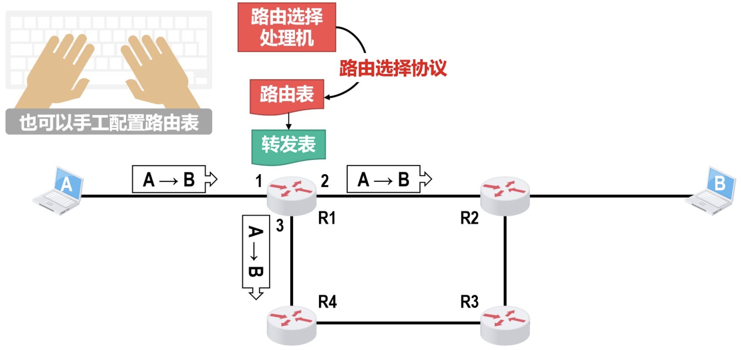 - 人工路由选择:由 网络运维人员 配置路由。