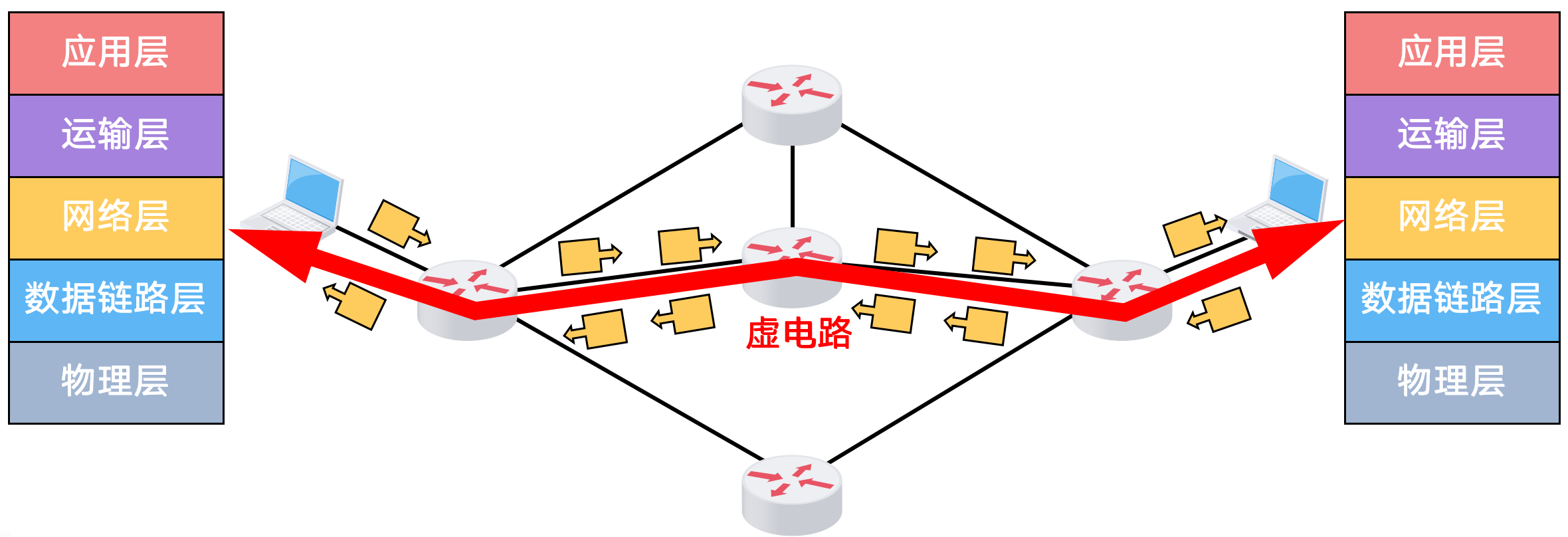 - 分组的首部仅在连接建立阶段使用完整的目的主机地址,之后每个分组的首部只需要携带一条虚电路编号即可。