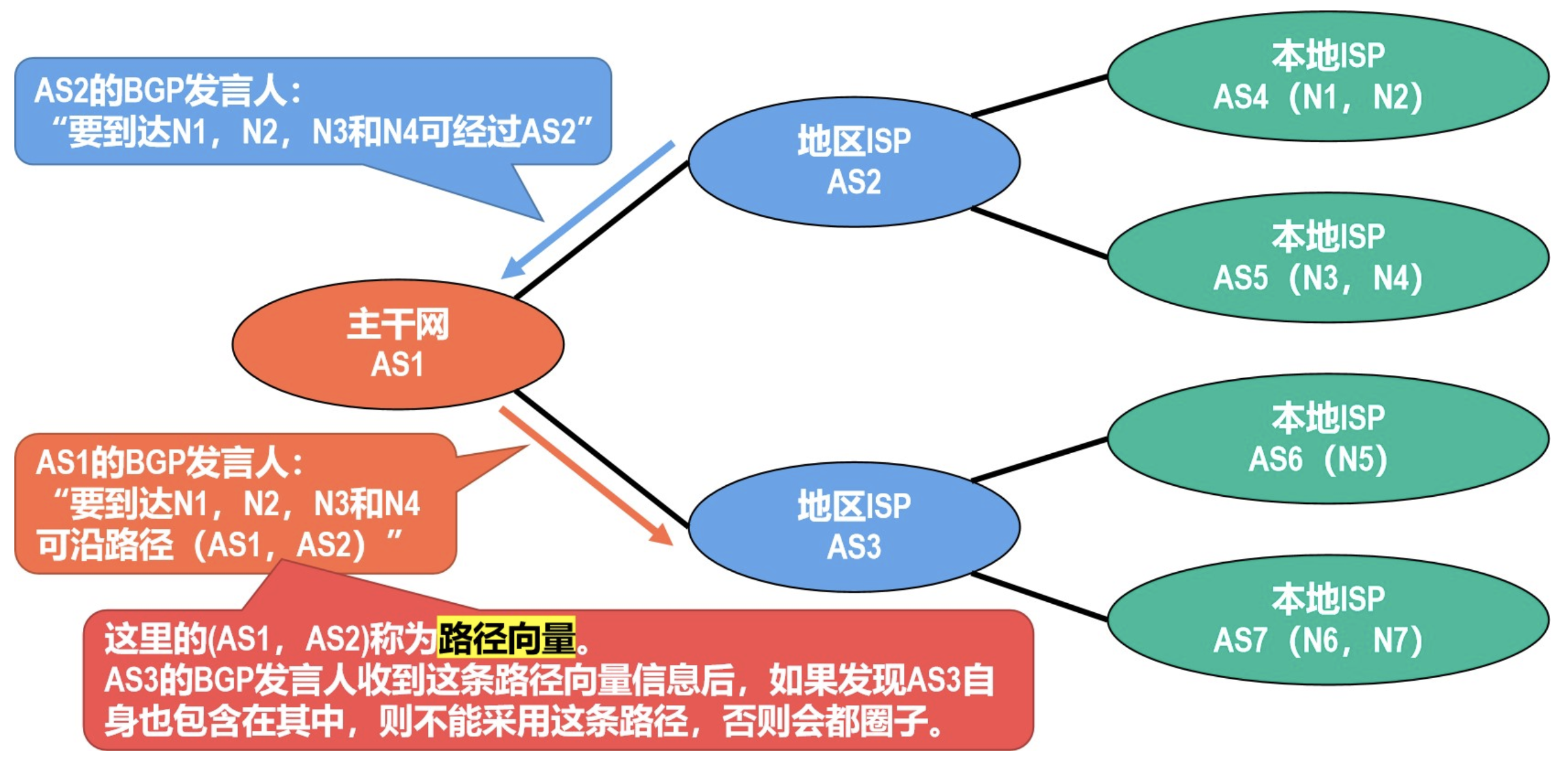 由于在不同 AS 内度量路由的 “代价”(距离、带宽、费用等)可能不同,因此对于 AS 之间的路由选择,使用统一的 “代价” 作为度量来寻找最佳路由是不行的。