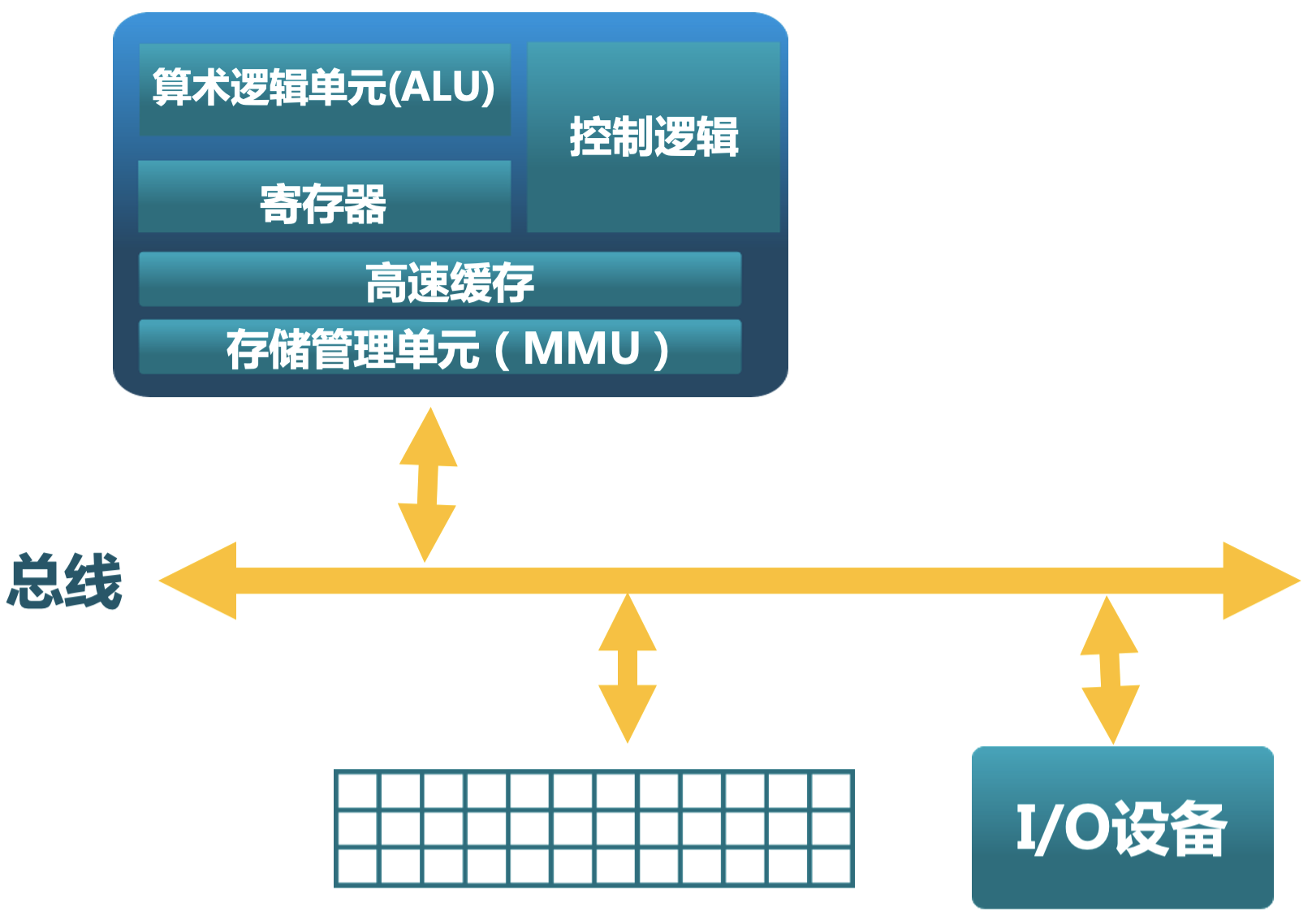 计算机系统包括 CPU、内存和 I/O 设备,如下图所示。
