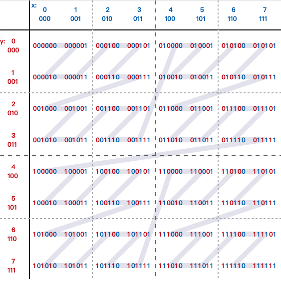 通过上面的合并规则可以看出,这个规则最终生成的就是 Z 阶曲线,如下图: