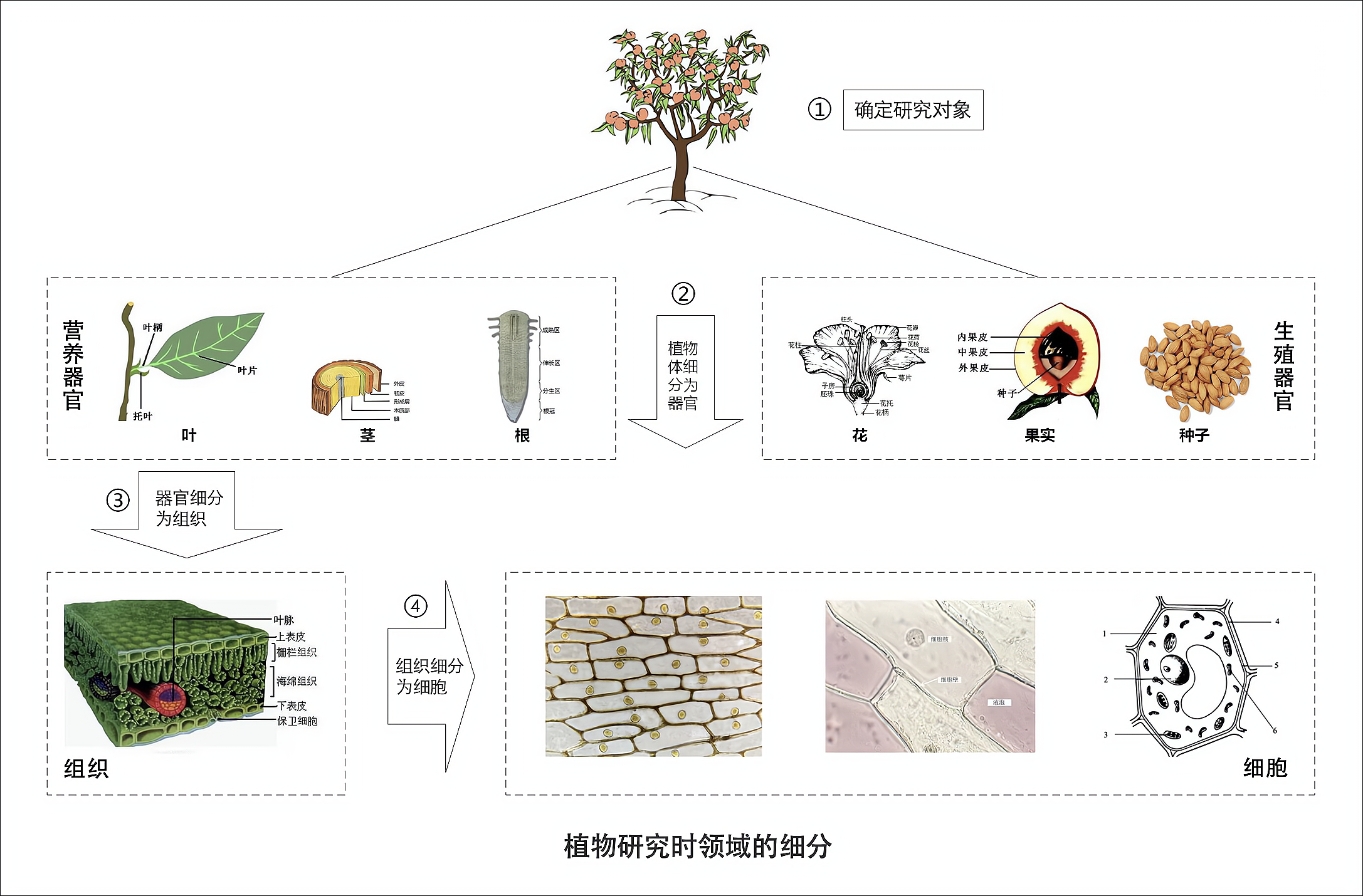 将组织细分为细胞,细胞成为我们研究的最小单元。细胞之间的细胞壁确定了单元的边界,也确定了研究的最小边界。