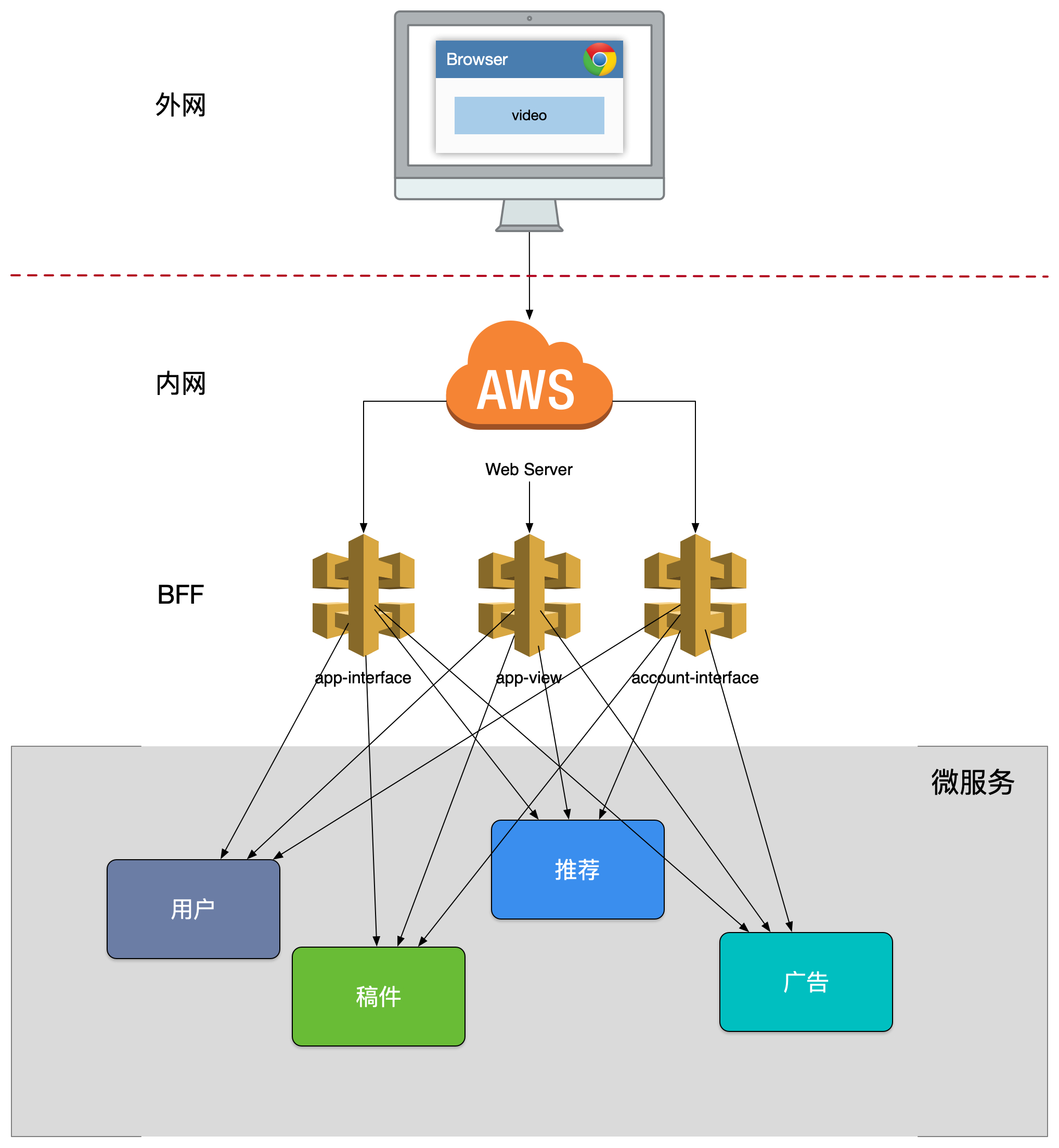 - 面向“端”的 API 适配(如 ios 不同版本的适配),耦合到了内部服务;